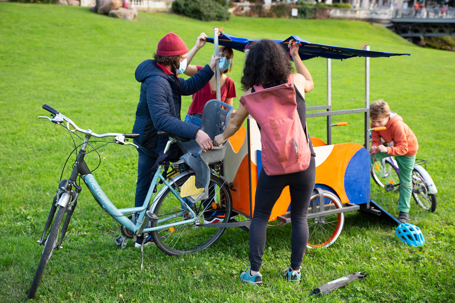 Sono traini per biciclette e strumenti multifunzionali, che promuovono esperimenti ed alleanze in antitesi alla specificità e all’individualismo dell’automobile. Servono ad usi singoli, promiscui, collettivi; si compongono e scompongono a seconda dei bisogni. Sono dispositivi estroversi, costruiti per entrare in sinergia tra di loro e con il contesto e per rafforzare il rapporto tra gli/le abitanti e la città.